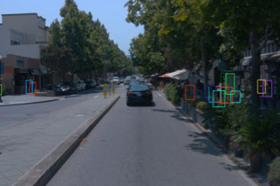 Extracted perception objects from multi-sensor data: all 5 cameras and the top lidar
